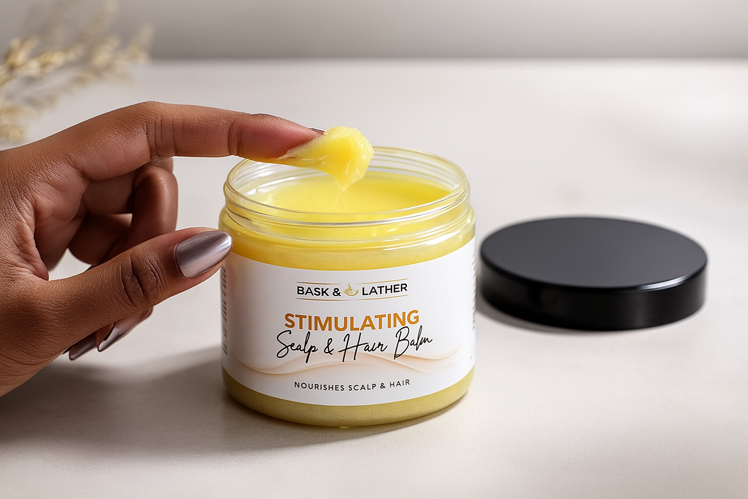 Revitalize your hair and scalp with this nourishing balm, uniquely formulating natural ingredients to address dryness while promoting healthy growth for strong, lustrous locks.